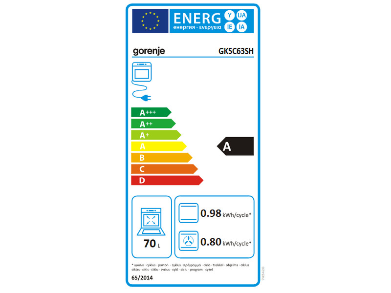 Energiaosztály A-tól (hatékony) G-ig (kevésbé hatékony) terjedő skálán: A