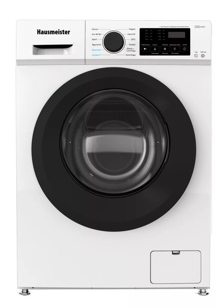 Hausmeister HM2711 Elöltöltős mosógép 7 kg, Inverter motor, A energiaosztály, magyar menü, keskeny kivitel