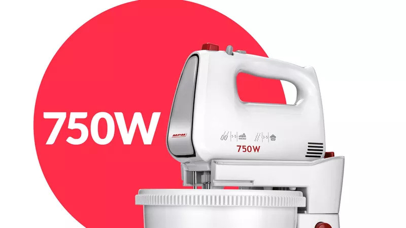 MPM tálas mixer 750 W (MMR-26Z). Ideális készülék a hétköznapokban történő használatra, kikeverheti vele a tésztát, felverheti a tojásfehérjét, krémeket. 5 sebességfokozat és Turbo funkció közül választhat.