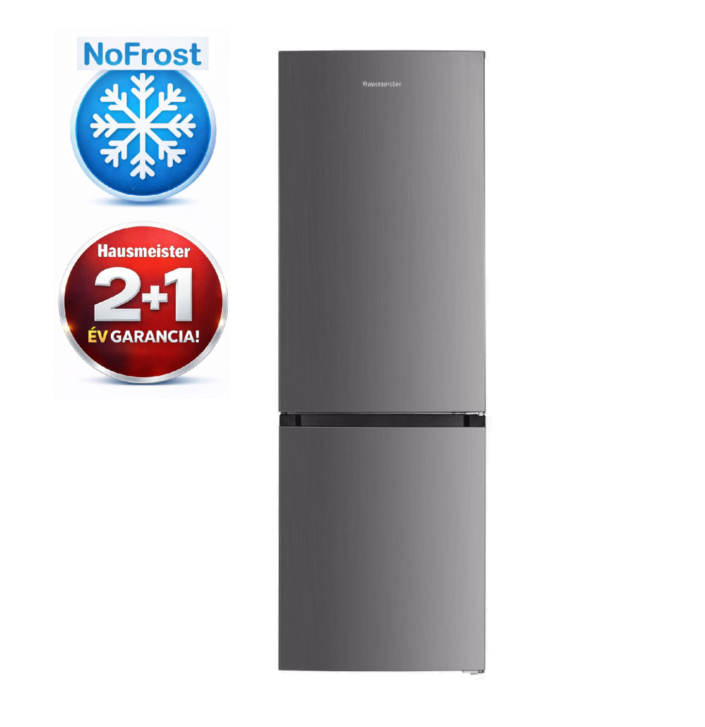 Hausmeister HM3187 Alulfagyasztós hűtőszekrény, NoFrost, 186 cm, 60 cm széles, ezüst